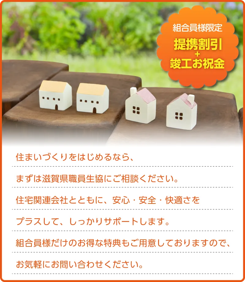 お得な住まいの提携割引制度を利用するには、滋賀県職員生協の紹介状が必要です。まず、はじめに職員生協へご連絡ください。